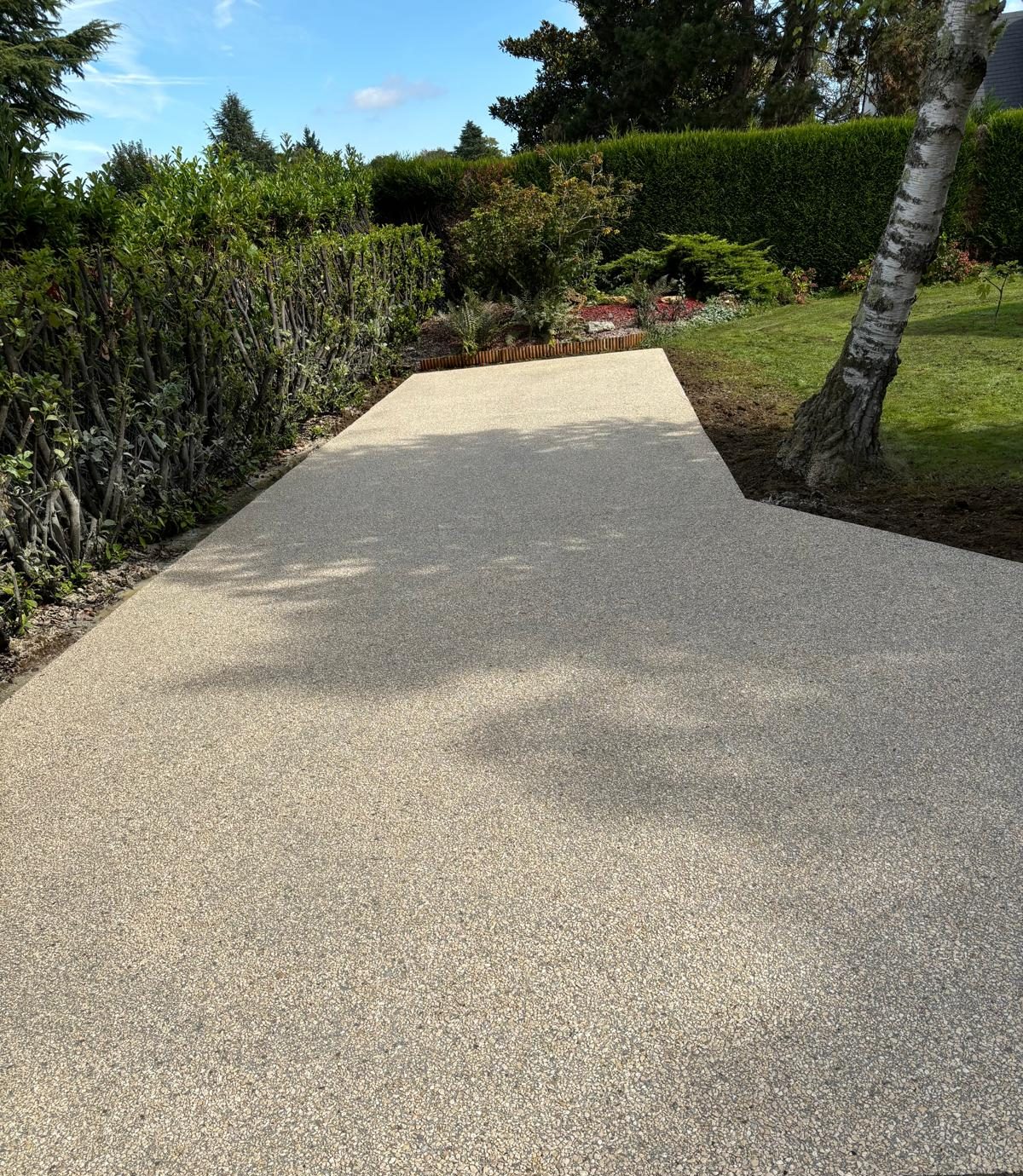Revêtement offrant un rendu esthétique, antidérapant et très résistant, idéal pour les aménagements extérieurs.